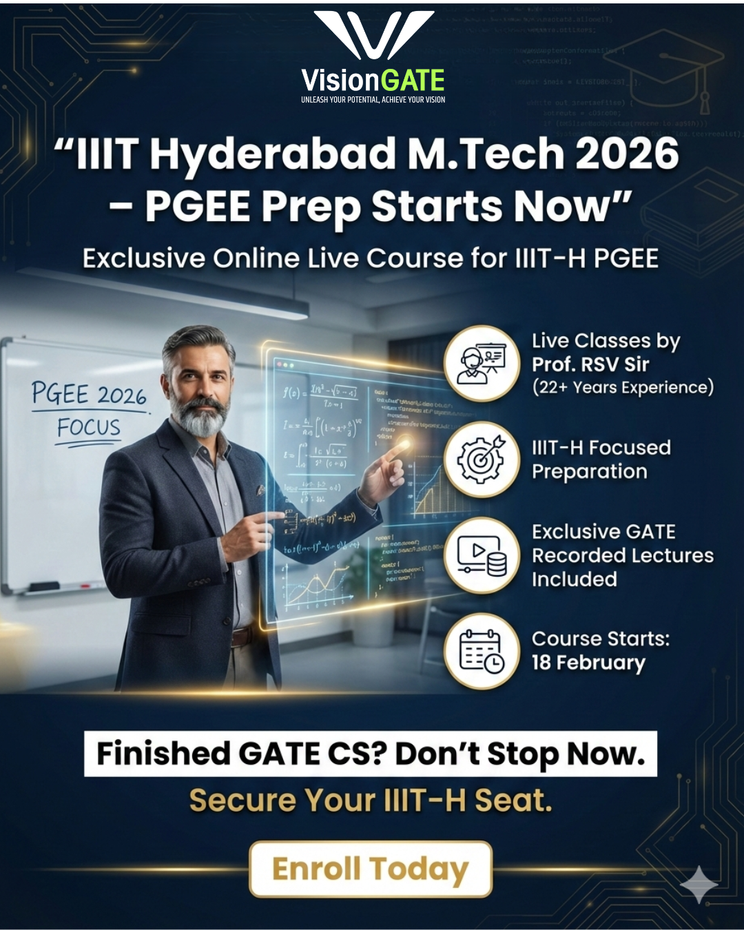 An alumna of VisionGATE herself, she secured an All India Rank of 94 in GATE, which led her to pursue her Master’s in Computer Science at IIT Bombay.